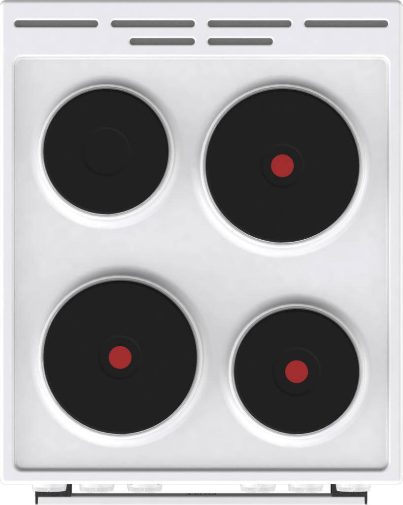 3 nopeaa pikalevyä, 1 vakiolevy edessä vasemmalla: Ø 18 cm, 2 kW, edessä oikealla: Ø 14.5 cm, 1.5 kW, takana vasemmalla: Ø 14.5 cm, 1 kW, takana oikealla: Ø 18 cm, 2 kW