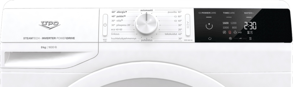 Helppokäyttöinen: pesukone vain päälle, valitse ohjelma sekä paina käynnistyspainiketta. Haluamasi lisäasetukset saat kätevästi valittua suurelta kosketusnäytöltä.