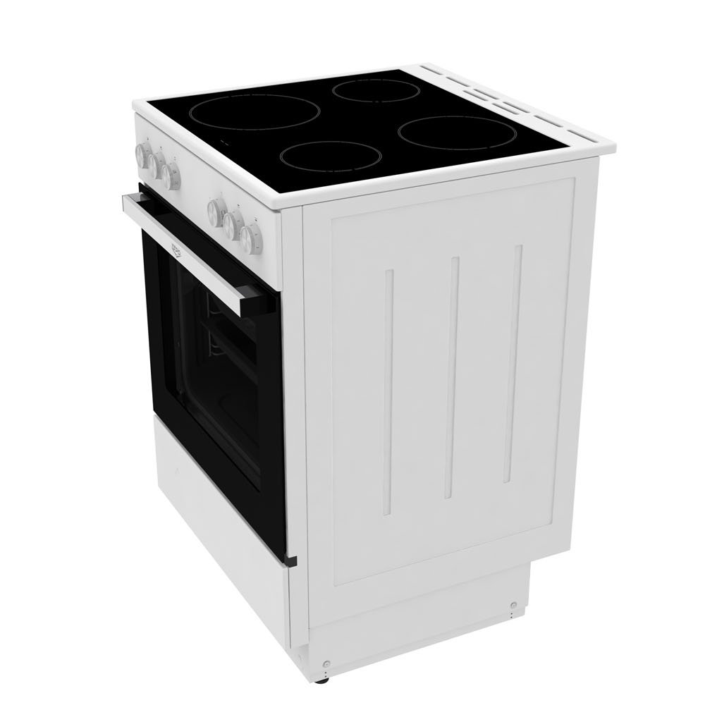 Ajattoman valkoinen viimeistely ja klassinen muotoilu sulautuvat vaivattomasti erilaisten keittiöiden sisustukseen. Vapaasti sijoitettava liesi on helppo asentaa ja suunniteltu kestämään arjen vaatimuksia – erinomainen valinta, kun haluat suorituskykyä ilman ylimääräistä säätöä.